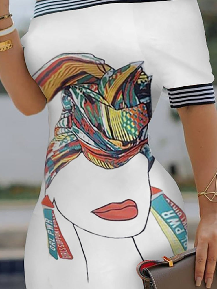 This dress is made of a blend of materials, features a casual style, and includes a figure pattern. The sleeves are regular length, and the design includes a pattern element. It is designed to have a regular fit and a bateau neckline, with a knee-length wrapped skirt silhouette. The fabric has a stretchy quality, and the dress includes a positioning print. This versatile dress is suitable for various occasions, and the weight is 350g. The short sleeves add to its comfort and style.